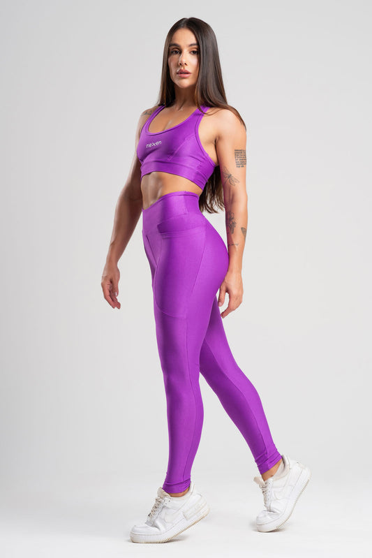 Conjunto Glow Pocket Roxo Poliamida Legging+Top