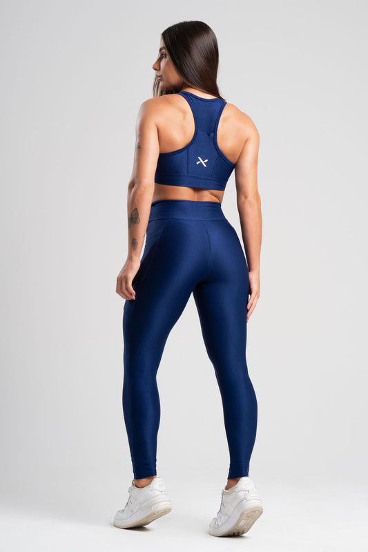 Conjunto Glow Pocket Azul Marinho Poliamida Legging+Top