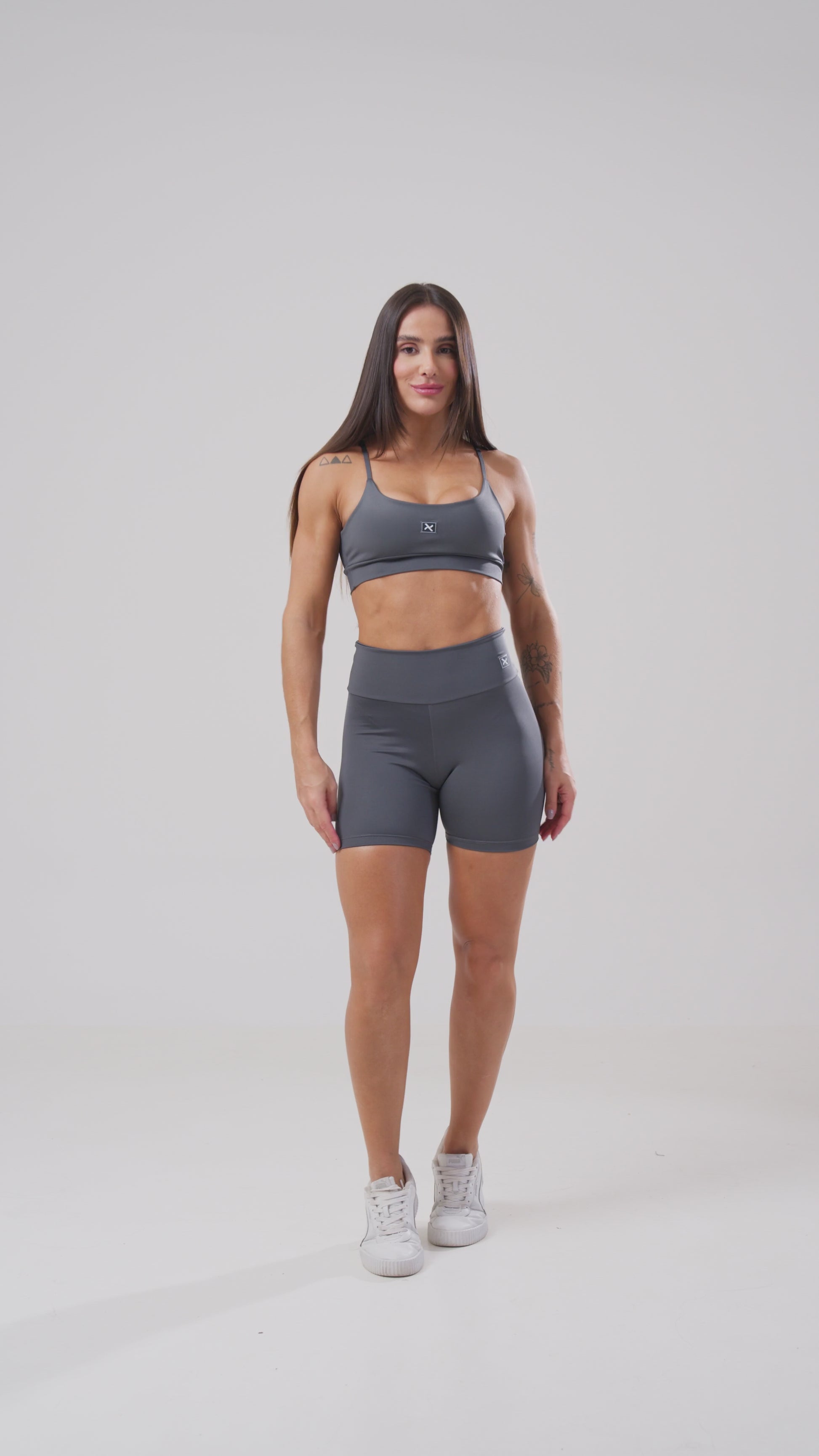 Um visual minimalista, sofisticado e atemporal, perfeito para quem gosta de treinar com estilo e praticidade.
